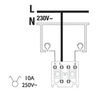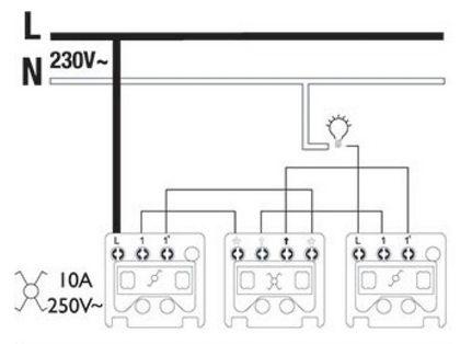 - Les deux fils entrants du premier interrupteur doivent être reliés aux vis 1 et 1’.
